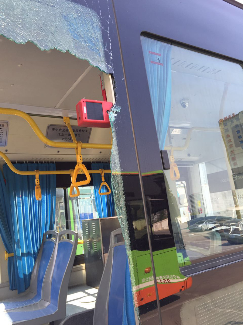 中交安无线遥控自动破玻器在城市公交应急演练中破玻效果杠杠滴