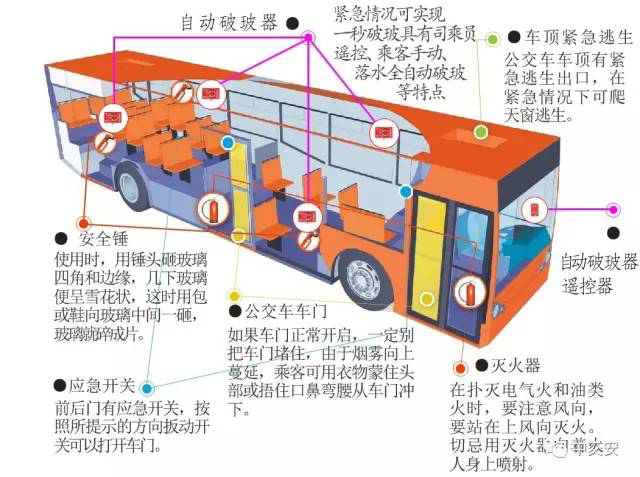 客车在起火等紧急情况下破窗逃生为最佳的逃生方法;关于如何正确和迅速逃生请点击:http://www.zjasy.com/index.php/index-view-aid-1.html